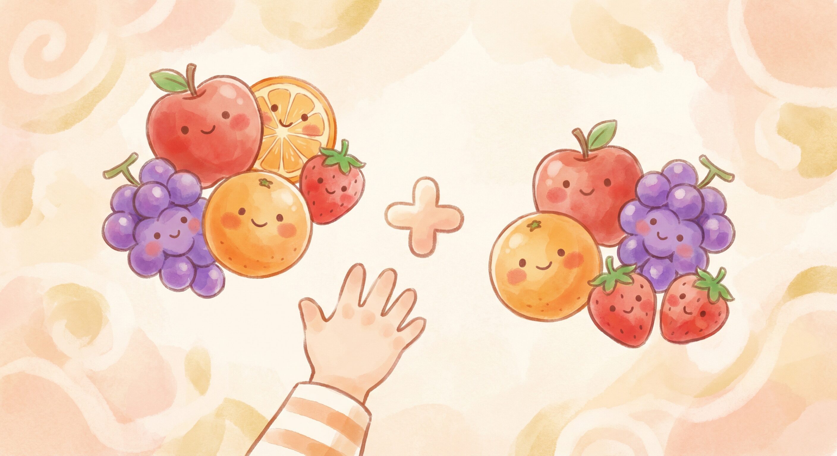 抽象的だった「足し算」が、フルーツを数える体験を通じて、自然と身についていく。