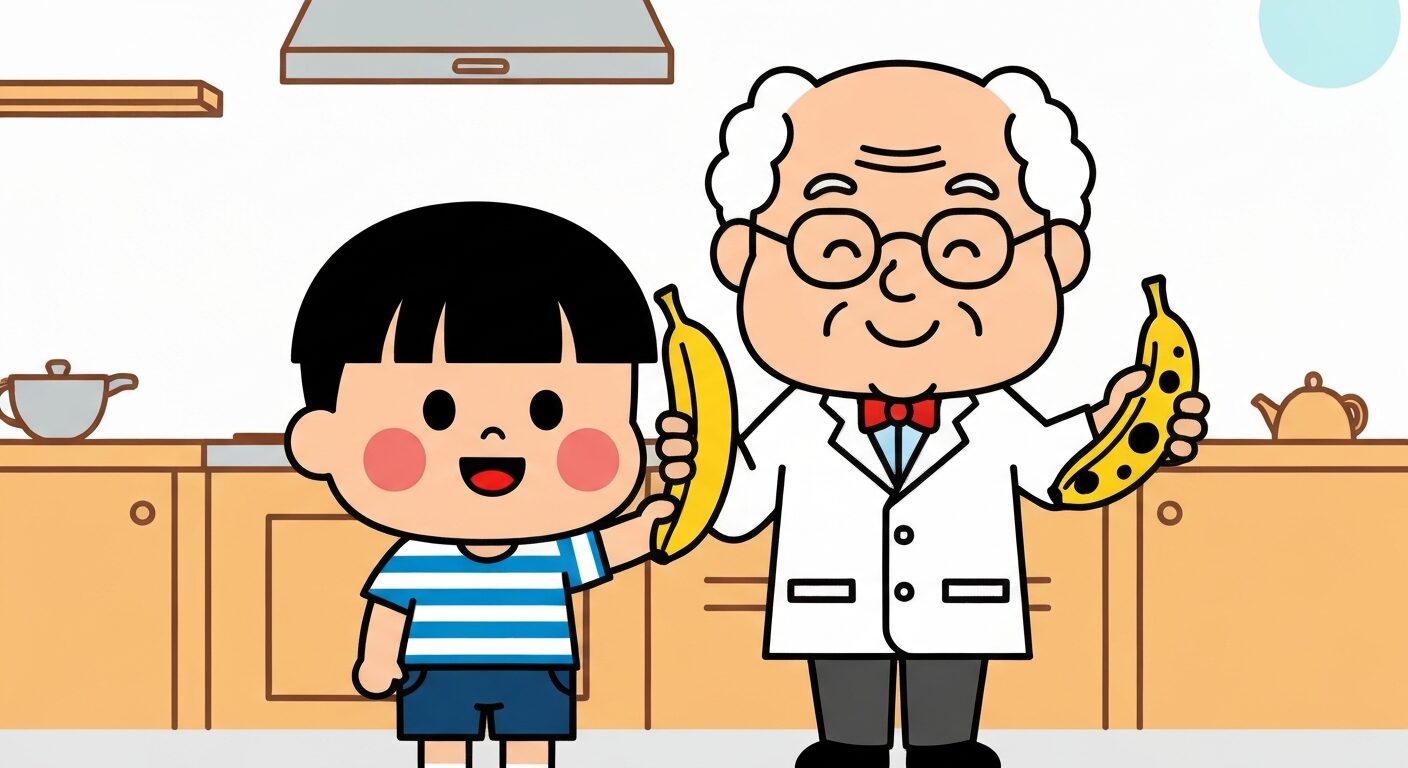 「ねえ、ばなな なんで くろくなるの?」