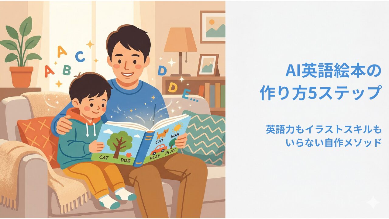 好きなテーマ、見慣れた風景、共感できる主人公。全部が揃った1冊を作れたら、英語がもっと身近になるはず。この記事では、AIを使って「この子のための英語絵本動画」を自作する方法を5つのステップで解説します。英語力もイラストのスキルもいりません。必要なのは「この子のために作ってみたい」という気持ちだけです。