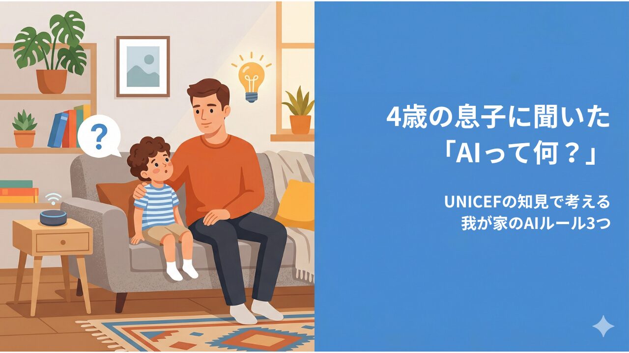 そんなモヤモヤを抱えていたとき、UNICEFがハーバード大のAI×教育の専門家にインタビューした記事を見つけました。今回はその知見をもとに、我が家で決めた「AI子育てルール3つ」を紹介します。
