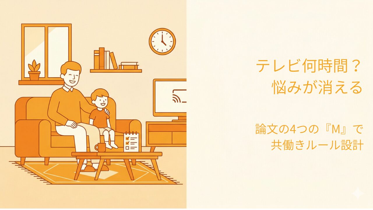 この記事では「子どものテレビは何時間くらいが目安?」という疑問に対して、カナダ小児科学会の提案(4つのM)をヒントに、共働き家庭でも回るルールの作り方をまとめます。