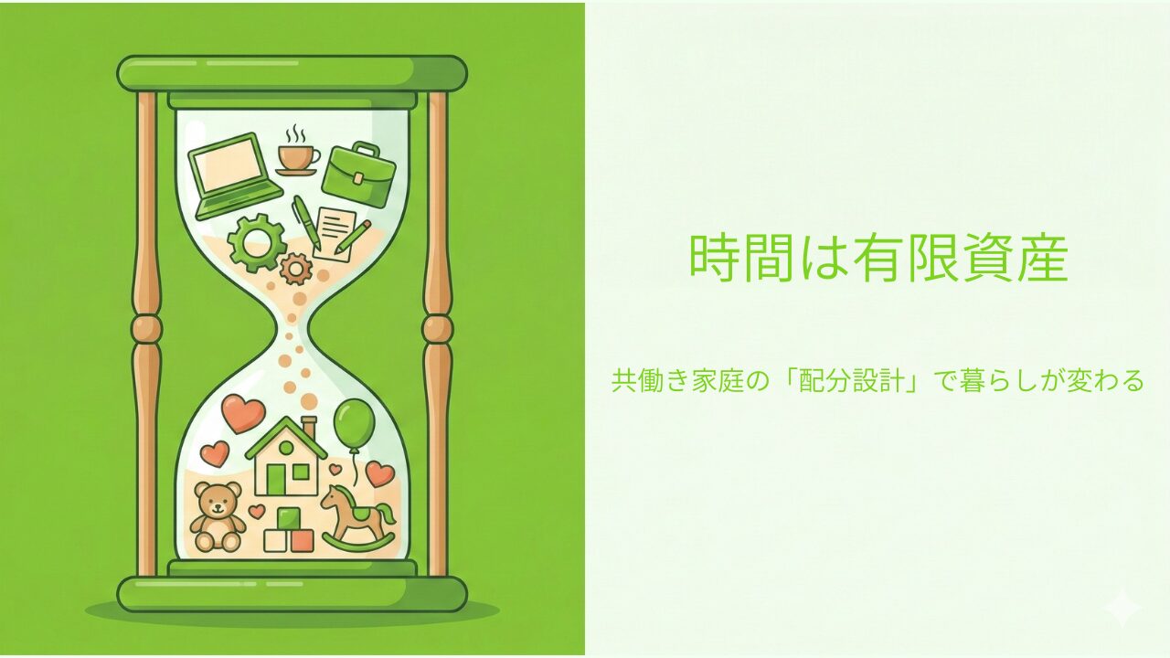 「毎日バタバタで、気づいたら寝落ち」「やりたいことがあるのに全然手がつかない」——共働きで子育てをしていると、こんな日々が続きますよね。僕もまさにそうでした。でもあるとき、時間の”使い方”ではなく**”配分の設計”**を変えたことで、日々の質がかなり変わった実感があります。この記事では、共働き家庭における「時間=有限資産」という考え方と、我が家で実践している配分ルール・仕組みを紹介します。